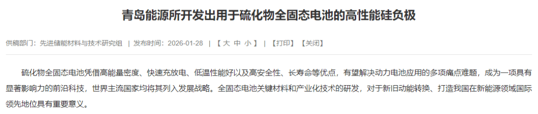 2025年11月,宁德时代旗下产投平台战略投资硅基负极企业兰溪致德新能源,瞄准固态电池核心材料。比克动力是国内较早使用硅负极材料的企业,已从一代硅走到了三代硅,将首效由77%提升至86%。欣旺达已将硅碳负极电池生产工艺,大规模应用于消费电子领域。